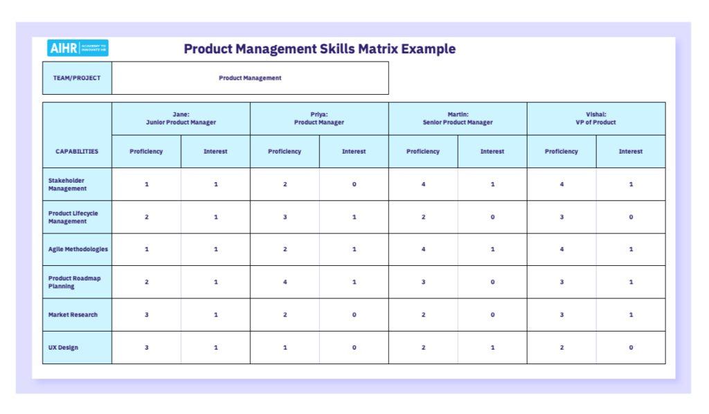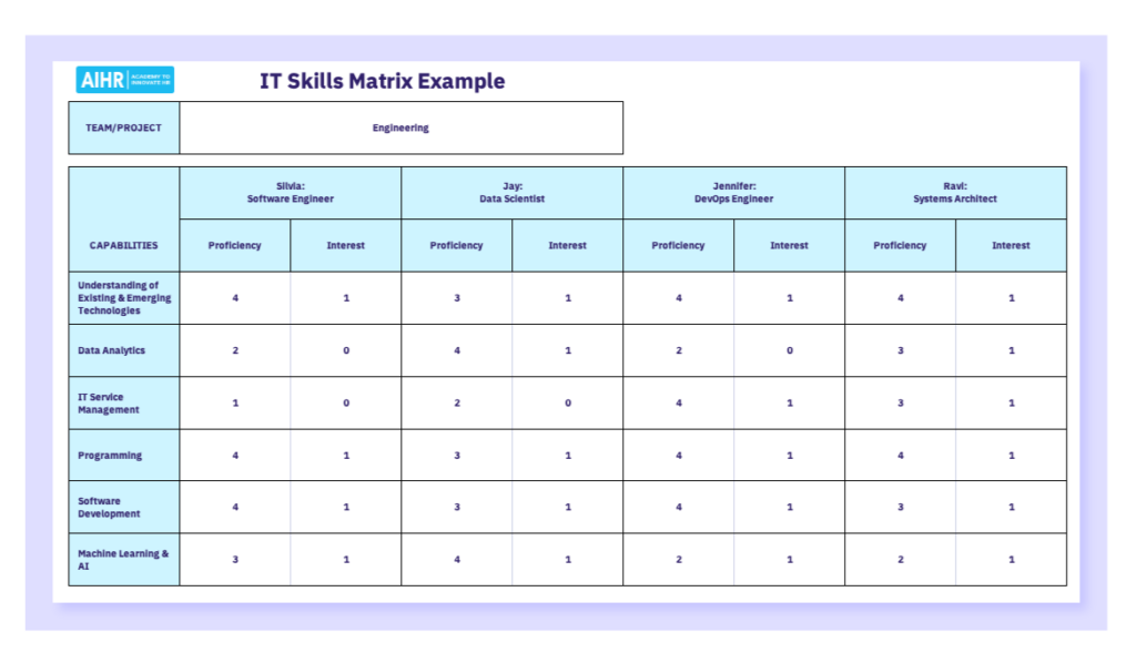 منبع: https://www.aihr.com/blog/create-skills-matrix-competency-matrix/
