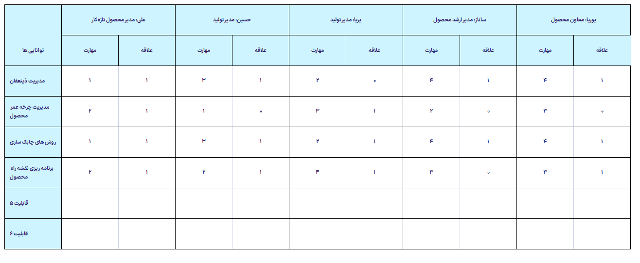 ماتریس مهارت مدیر محصول
