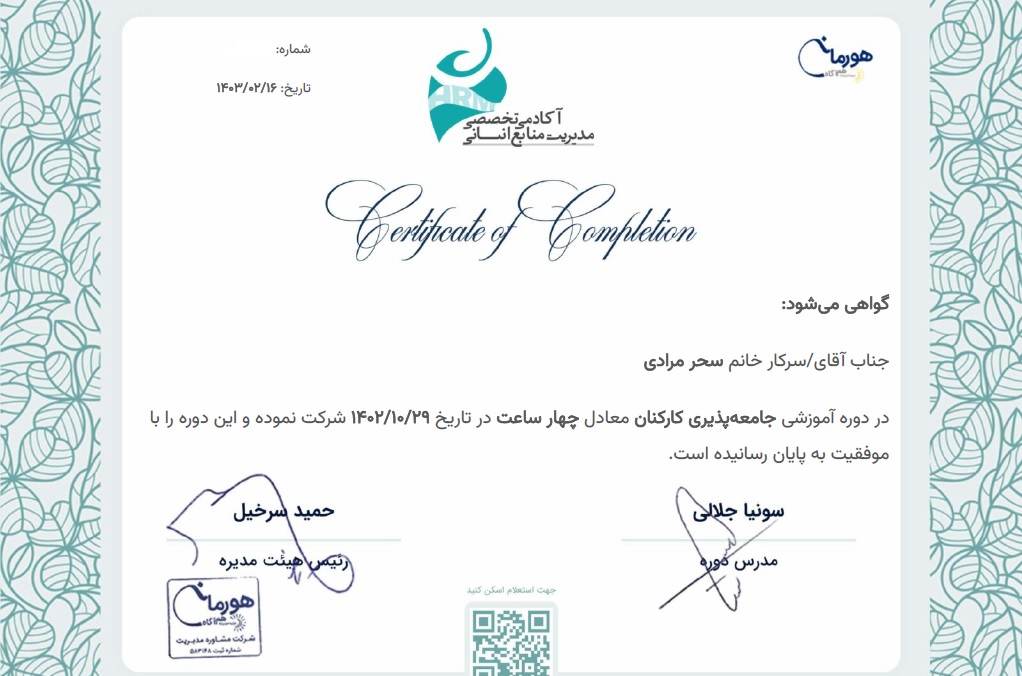 - گواهینامههای صادر شده، در سایت آکادمی تخصصی مدیریت منابع انسانی قابل استعلام و ردیابیست.